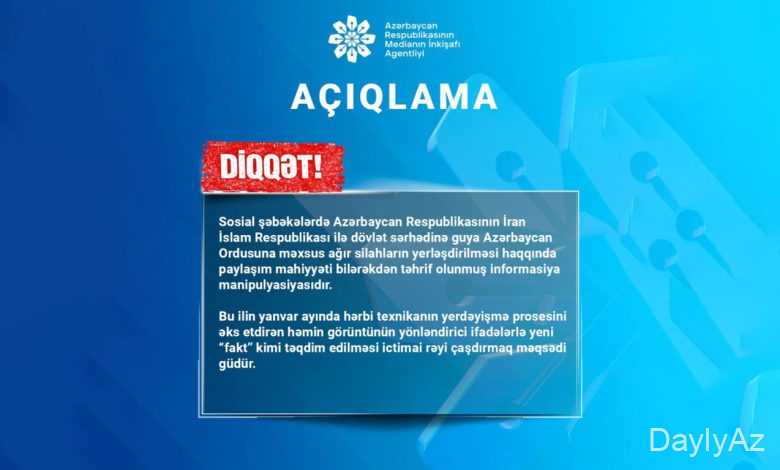 “Sosial şəbəkələrdə Azərbaycanın İranla dövlət sərhədinə guya Azərbaycan Ordusuna məxsus ağır silahların yerləşdirilməsi haqqında paylaşım mahiyyəti bilərəkdən təhrif olunmuş informasiya manipulyasiyasıdır”.