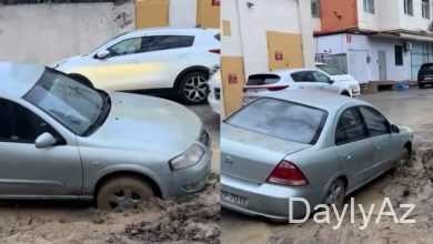 Bakıda binanın həyəti çökdü, maşın çuxura düşdü – Video
