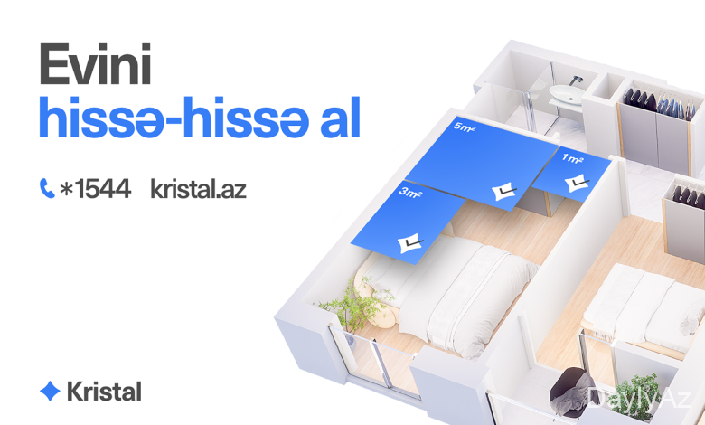 Mənzil almaq istəyənlərin sevinci artırdı. “Kristal” şirkəti yeni və innovativ hissə-hissə ev almaq üzrə satış modelinə start verdi. Bu model ilkin ödəniş və aylıq kredit öhdəliklərinə görə mənzil almağı təxirə salanların nəzarətini alıb. Satıcı müştərinə mənzil almaq müddətində qarşısını almağı təklif edir və ona mənzil sahəsinin seçməsi, istədiyi qədər yaşayış sahəsi alımı imkanı verir. Məsələn, qarşısını almağı 1 kvadratmetrə qədər, və ya 5 kvadratmetrə qədər edə bilərsən.